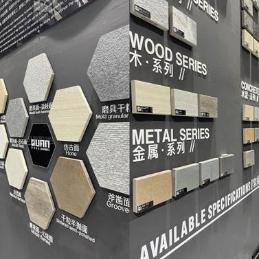 不同規格、不同厚度的熱門生態石英磚產品同臺亮相,臺面飾面、從厚到薄、由墻及地,充分展示其在不同場景和空間的應用能力。