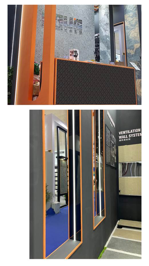 全體參展員工熱情接待了到來的貴賓,為他們介紹了品牌文化、生態(tài)石英磚的特性及工藝,揭秘展館的設(shè)計理念,分享生態(tài)石英磚最前沿的應(yīng)用趨勢。