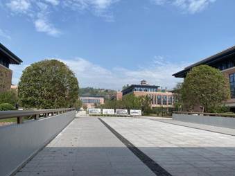 大門入口處綠蔭環簇,隔絕城市喧囂。采取現代東方設計理念,別致又不失典雅,彰顯氣宇軒昂的學院氣派之風范。