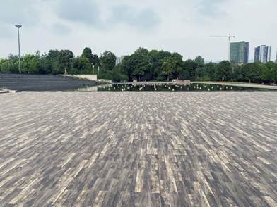 例如,璧山人民廣場占地面積約7800㎡,與司空見慣的黑白灰色系不同,璧山人民廣場創造性地選擇冠源生態石英磚木紋系列進行鋪裝,大面積的木紋磚平鋪在地面,實現人造景觀和自然環境的完美契合,讓人眼前煥然一新,營造出與眾不同的戶外休閑空間。